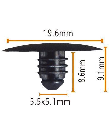 Die bokant van hierdie skroef is ontwerp om plat te wees, met 'n deursnee van 19,6 mm en 'n lengte van 8,6 mm, wat 'n noue pas by alle dele van die voertuig verseker. Die verhoogde deel in die middel is 5,5 mm in deursnee en 5,1 mm hoog. Hierdie unieke ontwerp verhoog nie net die verskerpte effek van die skroef nie, maar maak die installasieproses ook gladder. Die onderkant is 'n plat ronde basis met 'n deursnee van 9,1 mm, wat 'n stabiele steun vir die skroef bied. Die totale grootte is duidelik gemerk, wat gerieflik is om vinnig te identifiseer en te kies wanneer dit gebruik word.